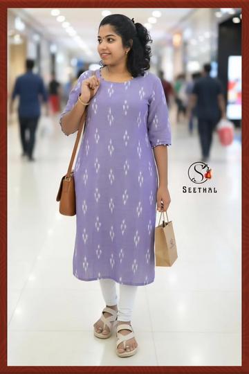 Lavender Ikkat Cotton Side Slit Kurti with Adjustable Back Corset