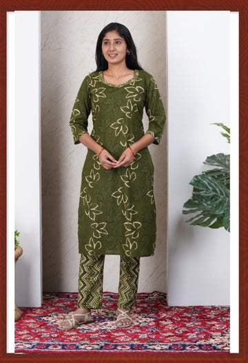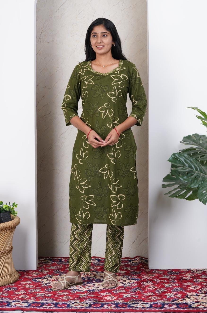 Mehndi Green Soft Printed Cotton Kurta Set for Women | Office & Daily Wear