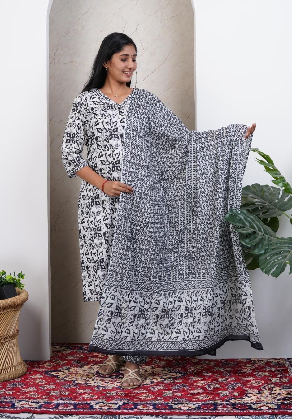 Black Soft Printed Cotton 3 Piece Kurta Set for Women | Office & Daily Wear