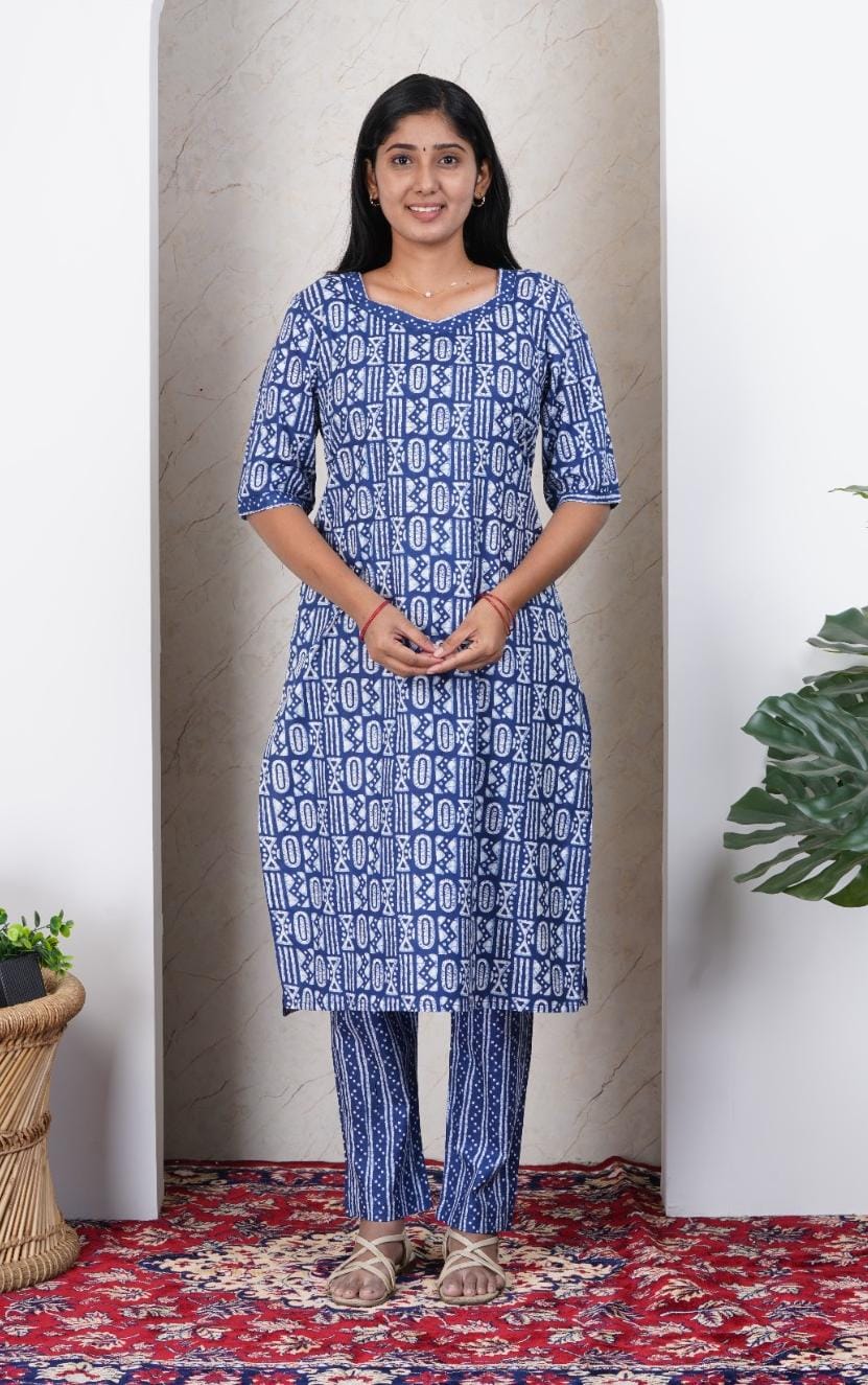 Indigo Blue Soft Printed Cotton Kurta Set for Women | Office & Daily Wear