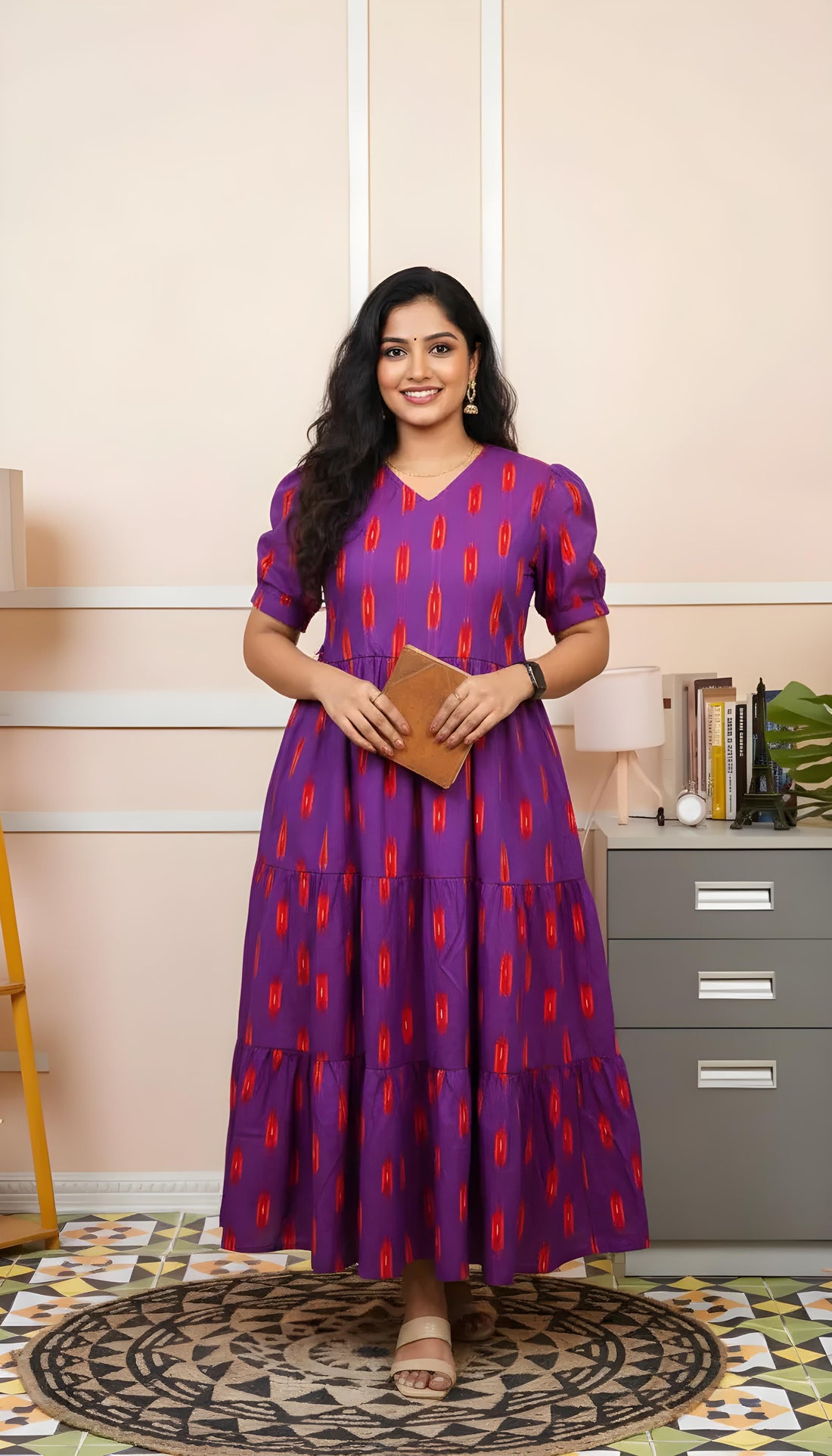Dark Purple Ikkat Cotton Three Tier Maxi with Adjustable Side Corsets