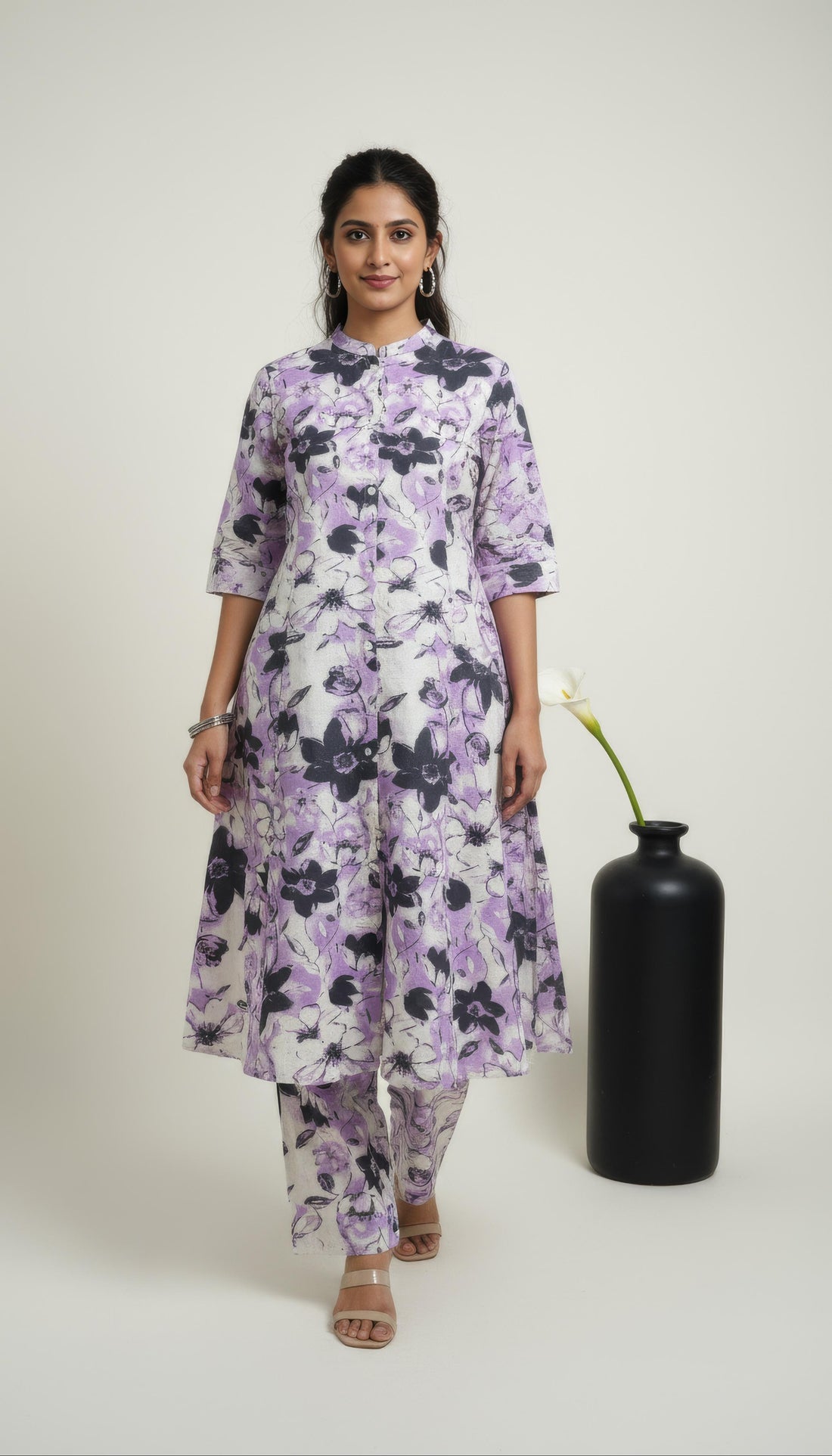 Dark Lavender Cotton Flex A-Line Co-Ord Set